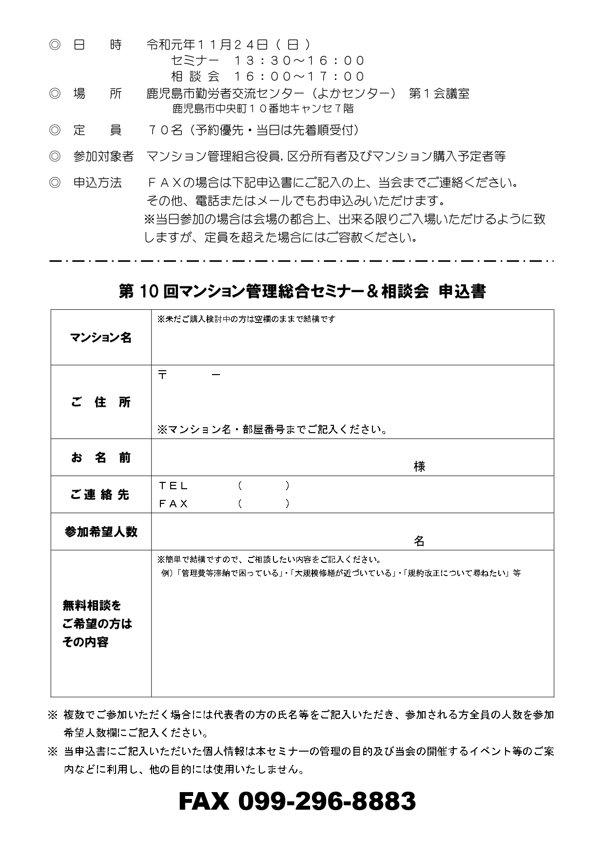 FAX:099-296-8883 FAX用申込用紙(印刷してご利用ください)